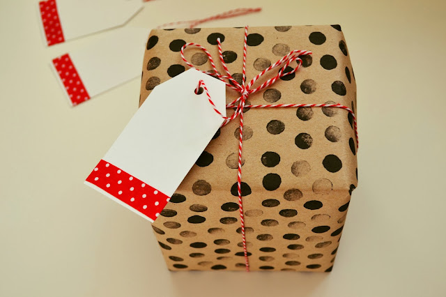 A pak už stačí jen uvázat na dárek 🙂 Balicí papír je také DIY, najdete ho zde.