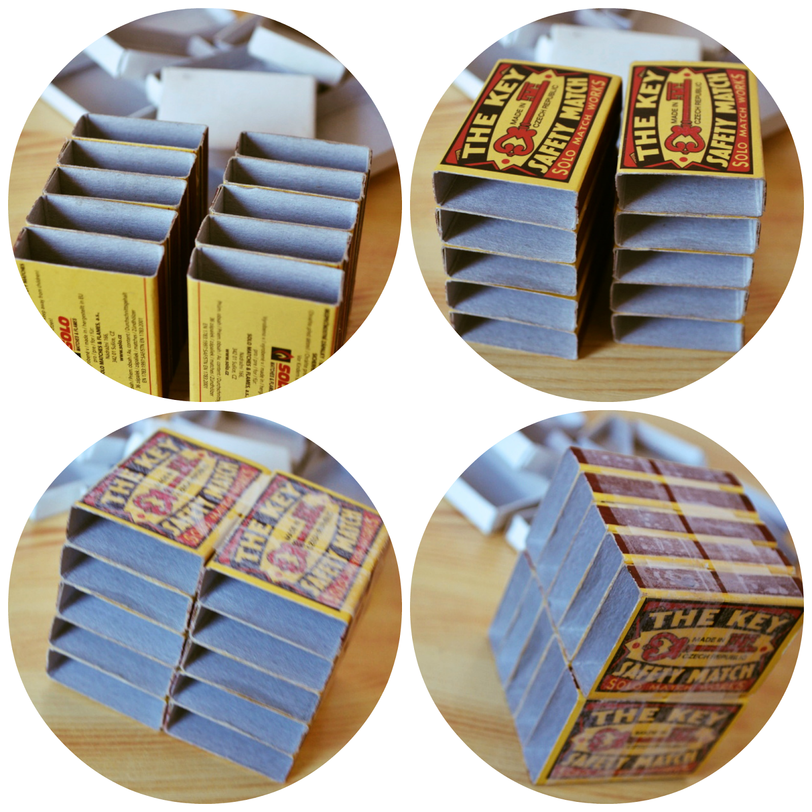 Krabičky jsem slepila lepidlem k sobě, a pro větší pevnost jsem je ještě omotala izolepou, aby se nerozjížděly do stran.