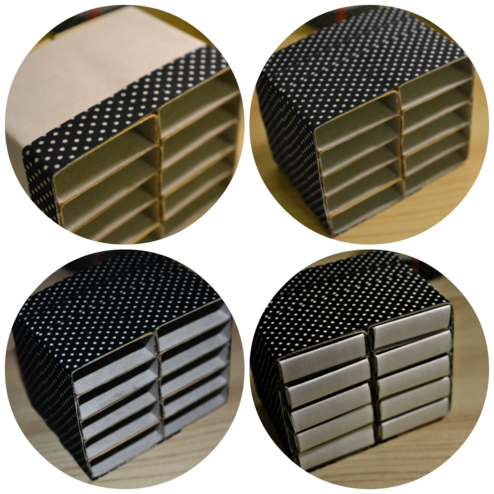 Krabičky jsem slepila lepidlem k sobě, a pro větší pevnost jsem je ještě omotala izolepou, aby se nerozjížděly do stran.