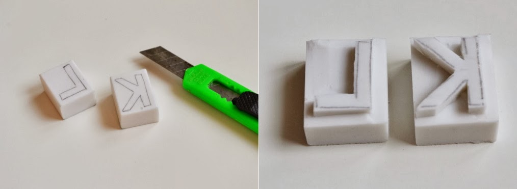 Pak stačí podle vzoru na papíře přepsat písmena obyčejnou tužkou na gumu a vyříznout.