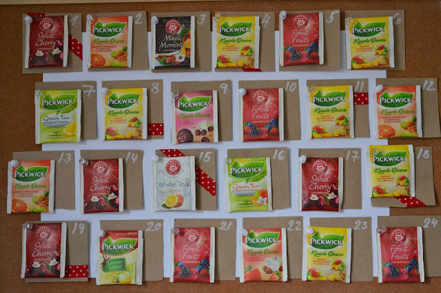 A pak jsem rozmístila čaje, aby nebyly dva stejné vedle sebe. Můžete si ale udělat kalendář ze všech čajů stejných, třeba vašeho nejoblíbenějšího 🙂