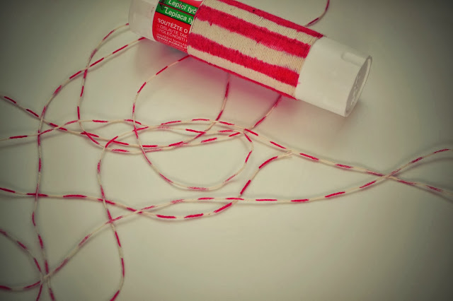 Pokud máte namotáno, stačí vzít červenou lihovou fixu a na provázku udělat podle fotky níže pruhy.